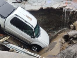 Conductor de camioneta cae a socavón tras fuertes lluvias en Ecatepec