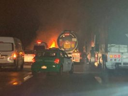Incendio consume tráiler nodriza con 11 autos en la México-Puebla