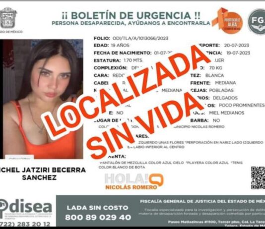 Localizan sin vida a mujer desaparecida en Nicolás Romero