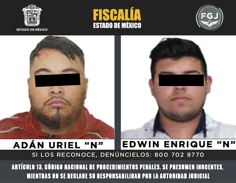Ecatepec, Estado de México, 14 de enero de 2026.— La Fiscalía General de Justicia del Estado de México (FGJEM) informó que cumplimentó una orden de aprehensión por el delito de homicidio calificado en contra de Adán Uriel “N”, alias “Wero”, y Edwin Enrique “N”, alias “El Gato”, quienes habrían disparado contra dos personas en este municipio, hechos en los que una de ellas perdió la vida.