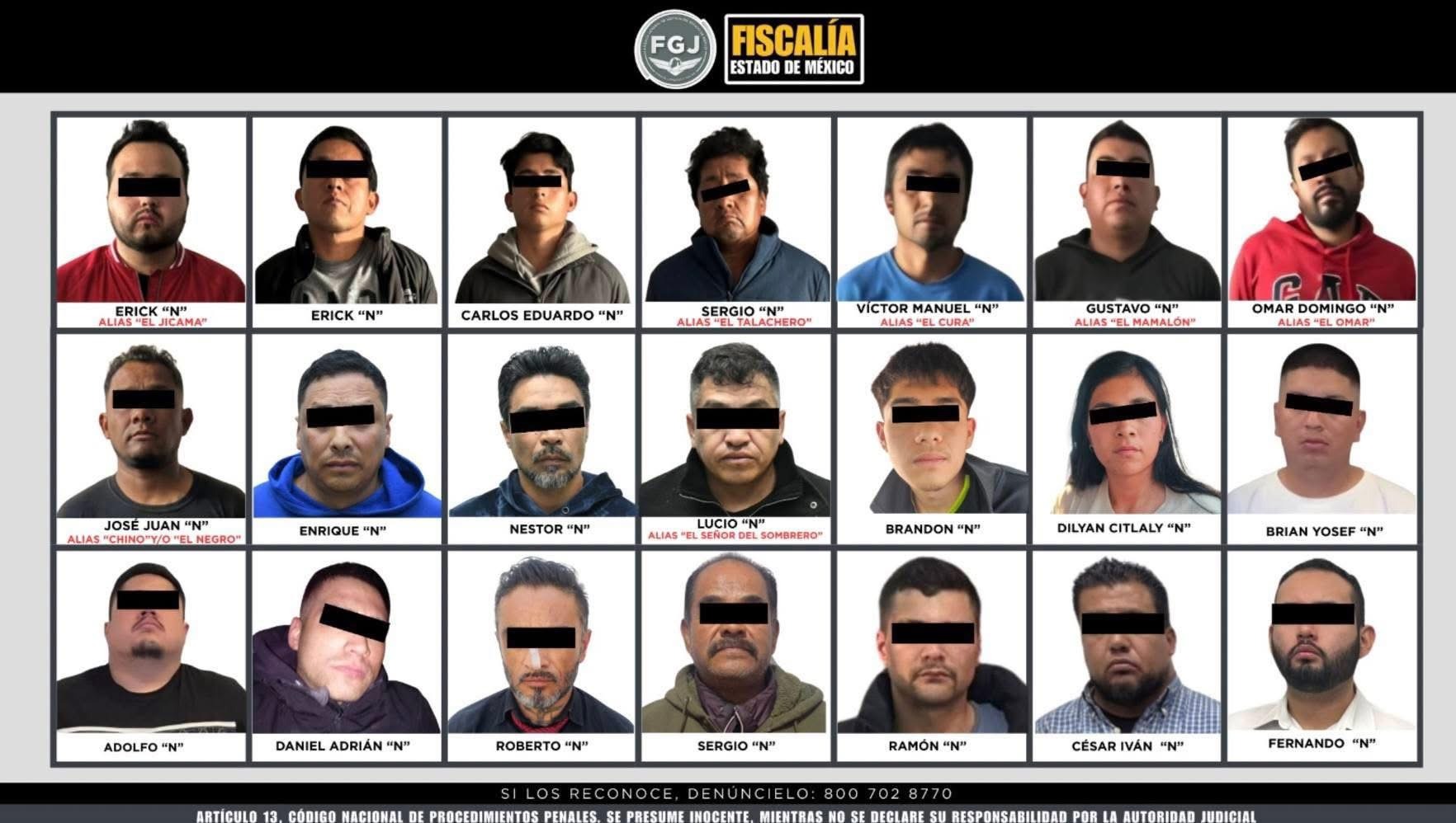 En paralelo, en acciones operativas vinculadas a estas carpetas, la FGJEM reportó la detención en flagrancia de 21 individuos, a quienes se les aseguraron armas de fuego, dosis de narcóticos, prendas e insignias apócrifas y vehículos con los que presuntamente buscaban simular pertenecer a corporaciones policiales. La institución señaló que estos sujetos estarían relacionados con delitos como extorsión, homicidio y robo de vehículo, entre otros, y recordó que deben ser considerados inocentes hasta que exista sentencia condenatoria.