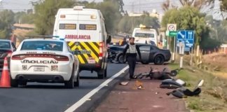 Teotihuacán, Estado de México. Una pareja de motociclistas murió la mañana de este domingo tras ser impactada por un automóvil sobre la autopista México-Pirámides,...